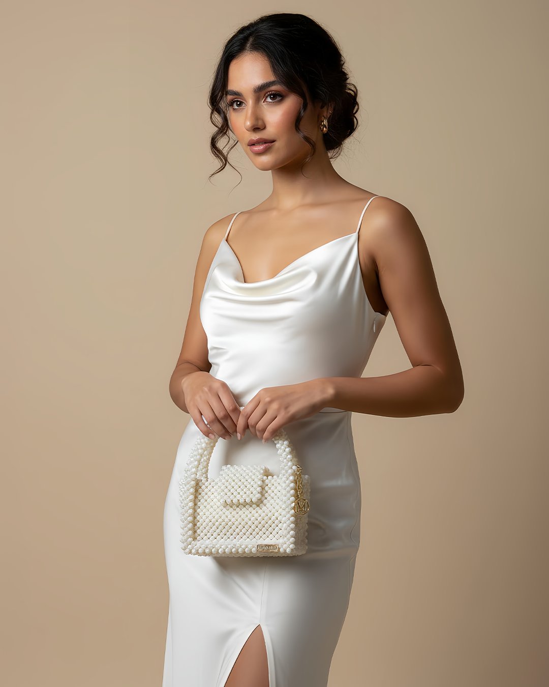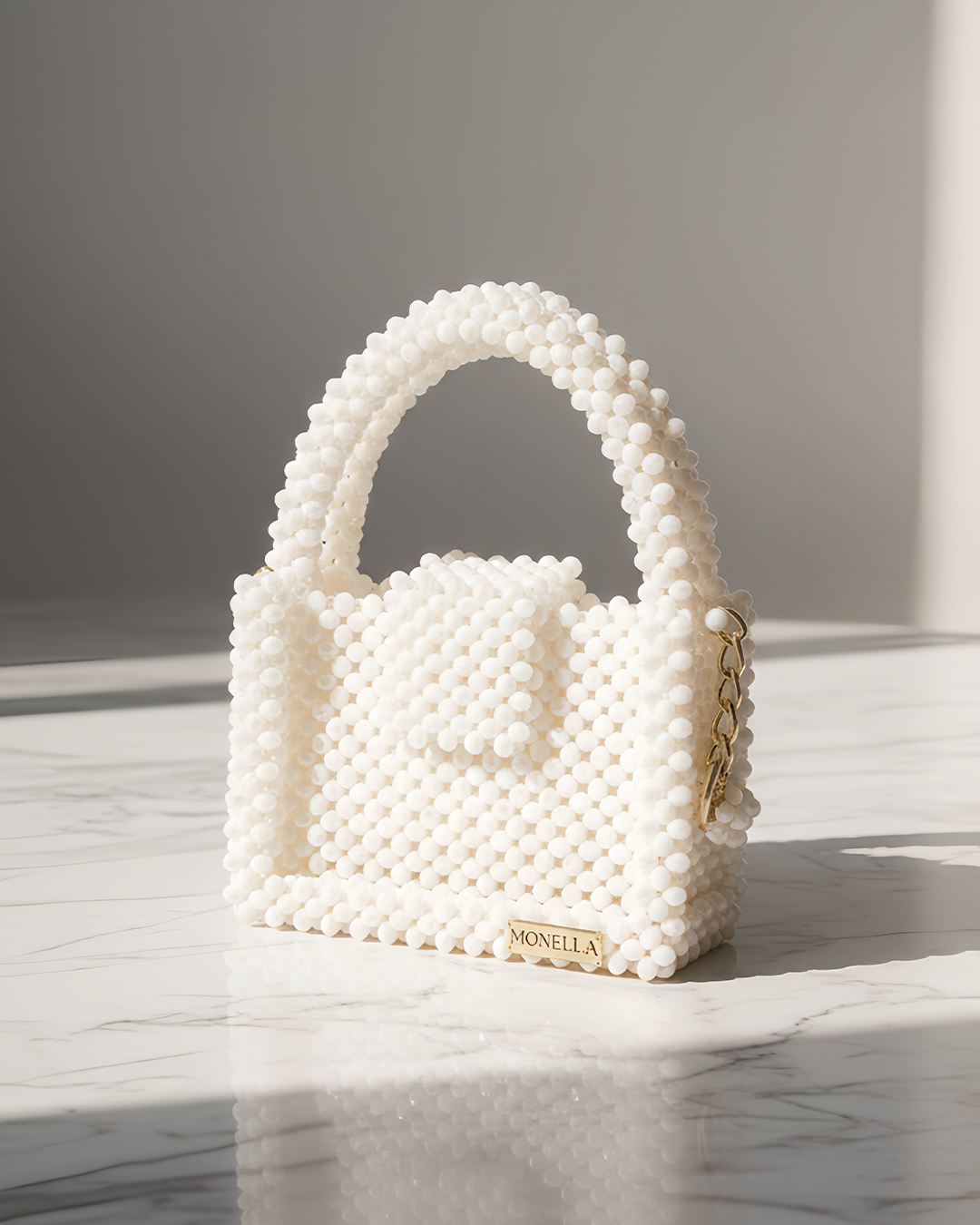 Délicat et raffiné, le sac Camélia incarne la pureté et l’élégance. Entièrement confectionné à la main en perles blanches mates, il apporte une touche lumineuse et sophistiquée à toutes vos tenues.